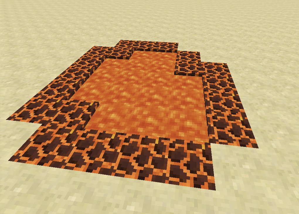 Upon tapping sneak, the MagmaPool will start to form, with first magma appearing, then expanding, then lava appearing at the center, and both magma and lava expanding out, until it reaches a size somewhat around the picture that I displayed.. It would take about 3 - 4.5 seconds for it to fully form.